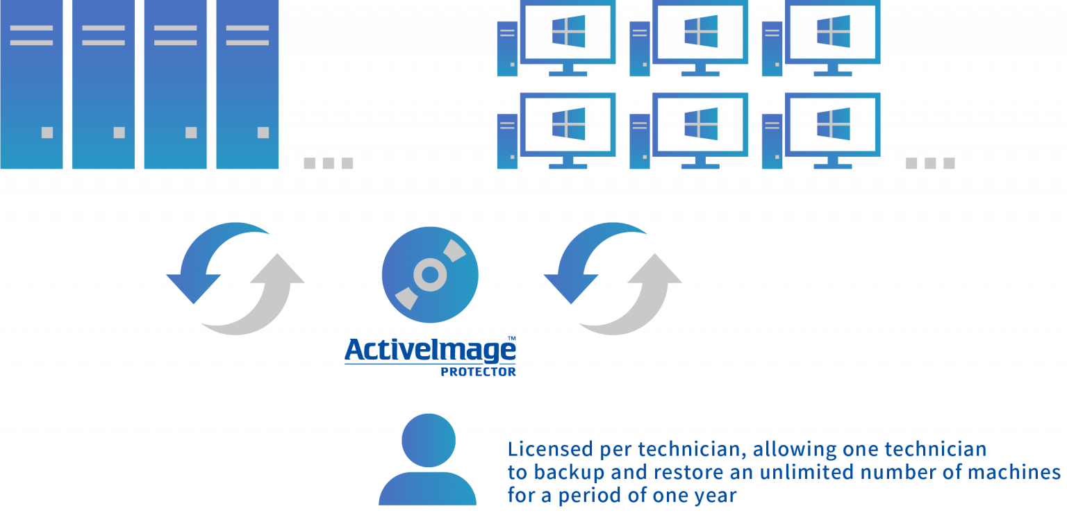 License designed for IT professionals at an affordable priceActiveImage Protector™IT Pro is offered on a subscription basis, licensed per technician, allowing one technician to backup and restore an unlimited number of systems (server/desktop) on an unlimited number of machines for a period of one year. |