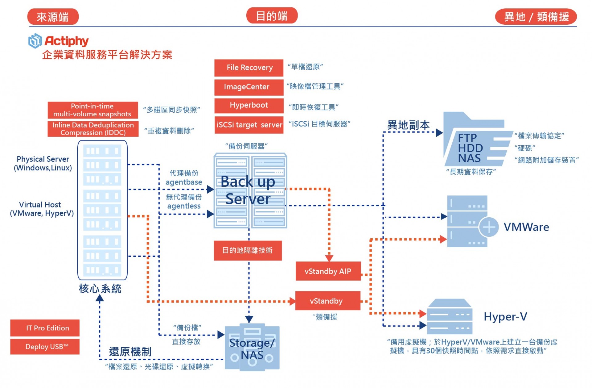 2. Hyper-V & VMware完成在異機vStandby,可完成20T資料量備份,提升備份速度,簡易步驟進行災難還原演練與驗證,最終達到備份321原則。