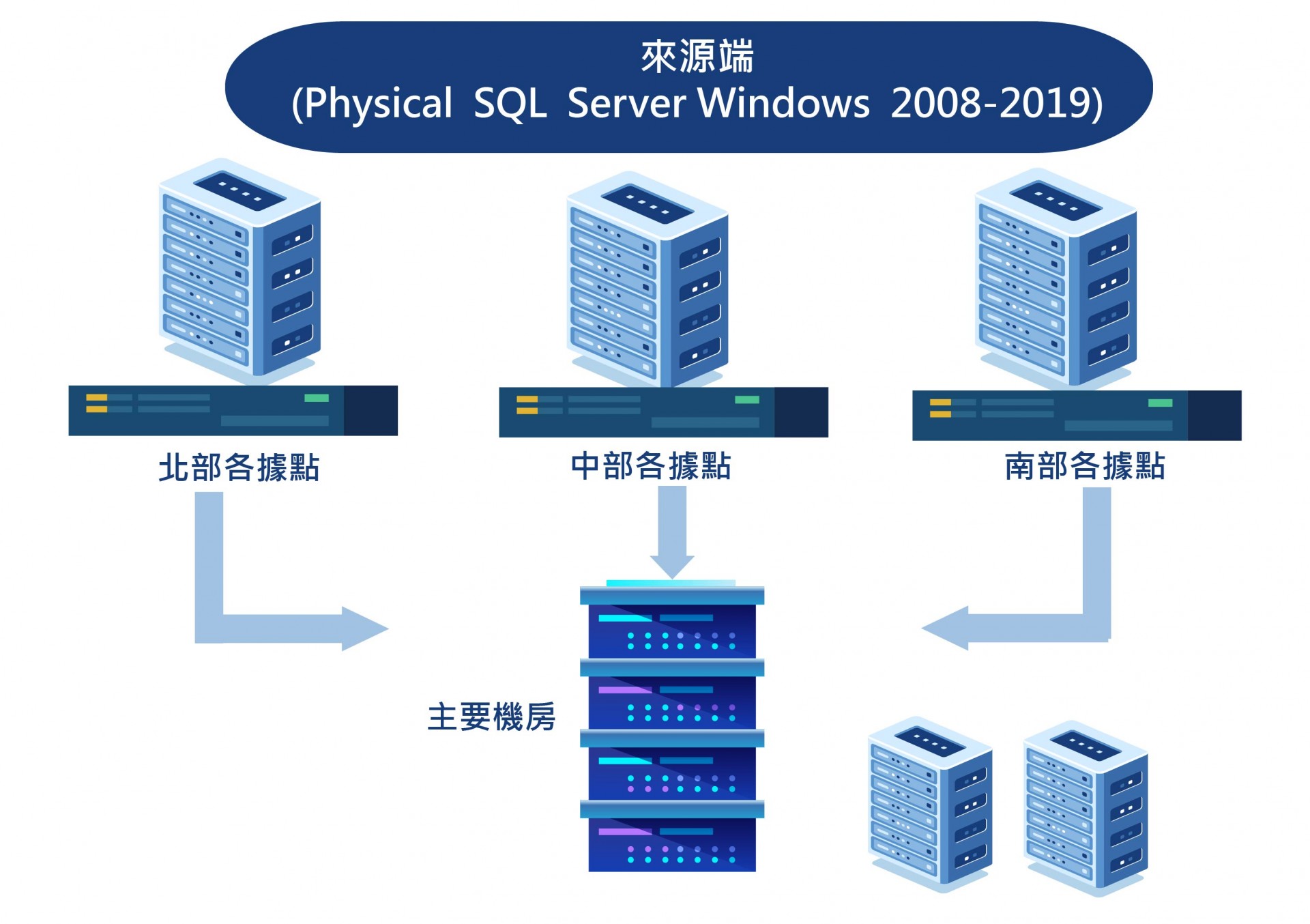 1. 本案客戶以往定時將SQL資料,透過寫Script方式備份指向到大型儲存設備上,但舊有的備份機制,時常發生傳輸不完整、時間過長、無法有效災難救援的問題