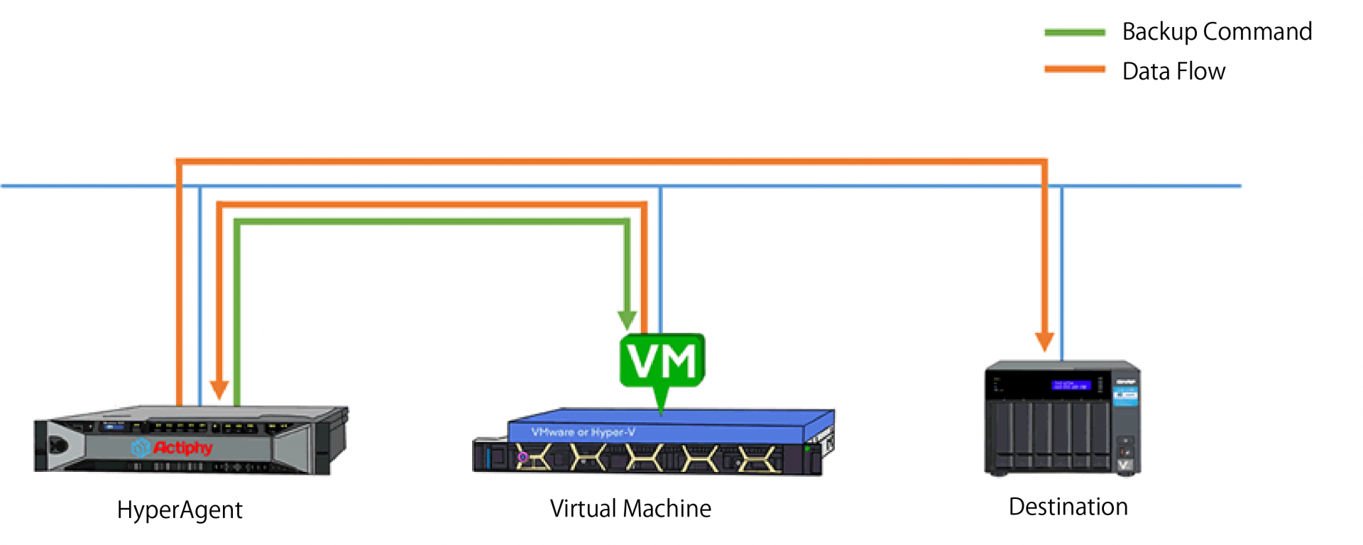 使用 HyperBackup 備份虛擬機時,備份數據流程如下: