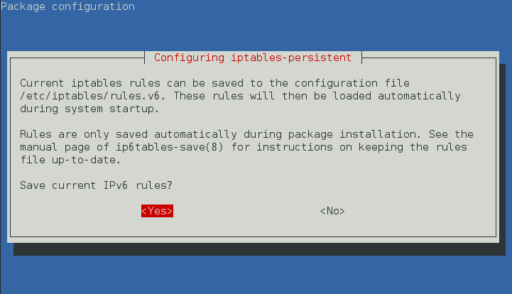 8. AIP2022 Linux 的安裝顯示 [Configuration iptables-persistent] 視窗