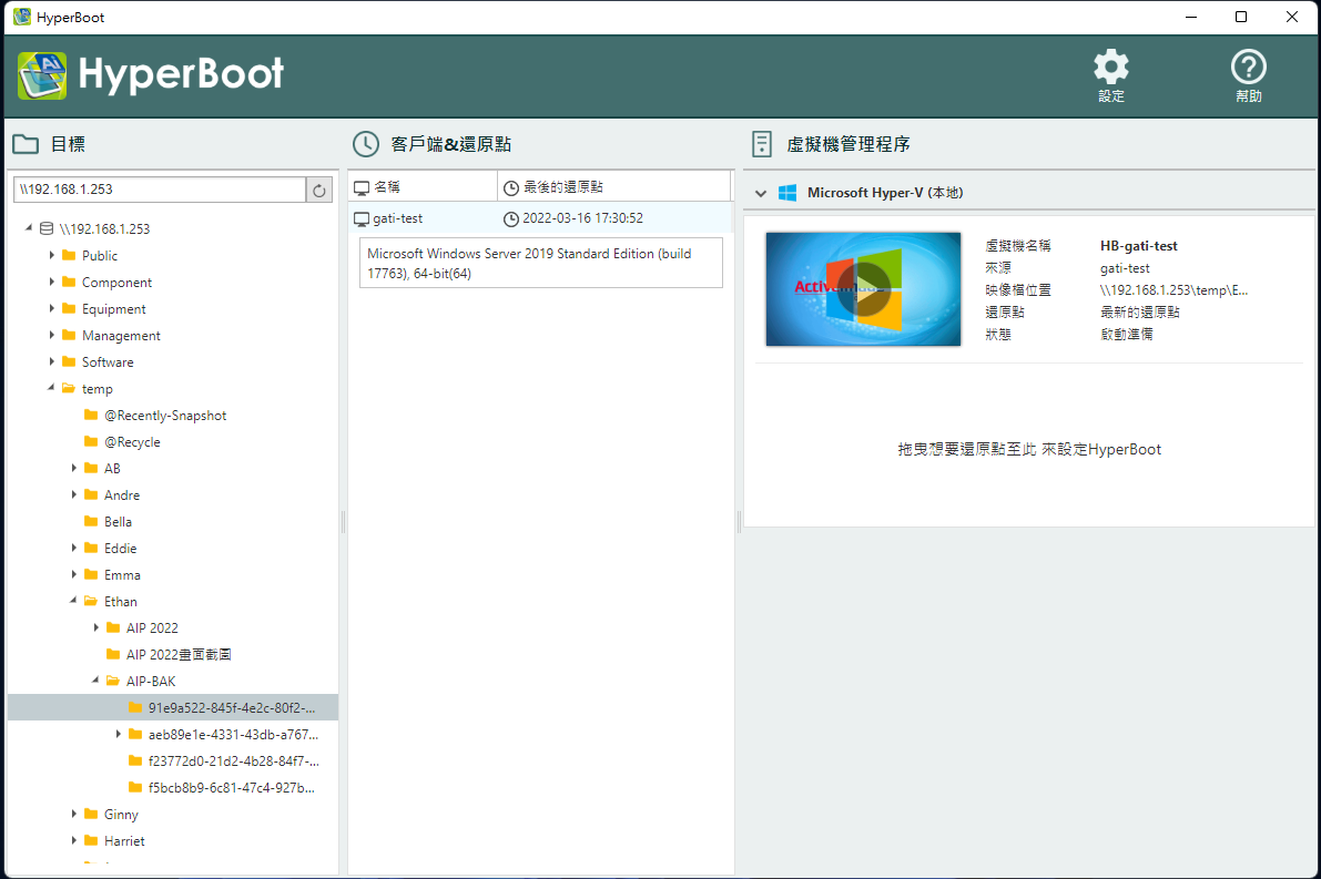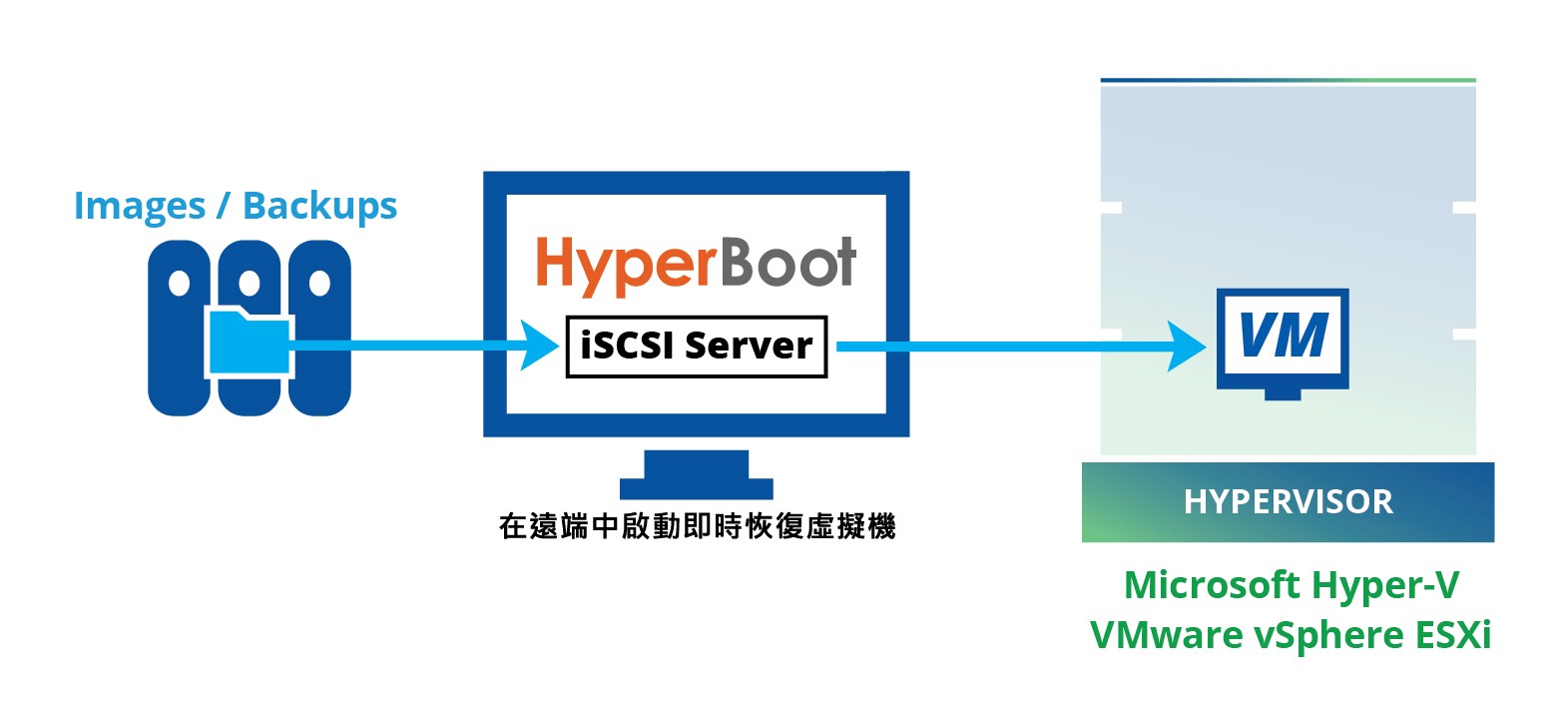 - HyperBoot作為Actiphy預防災難的可用性解決方案,HyperBoot是一個免費的獨立工具,可將ActiveImage Protector的備份映像檔啟動為即時恢復虛擬機器。