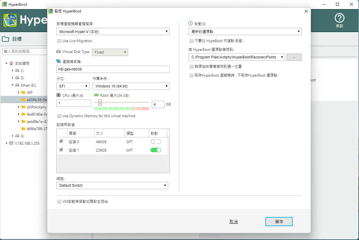- HyperBoot即時恢復的虛擬機器就像是原來機器一樣,當您的實體系統發生損壞時,可以作為暫時性的替代系統。