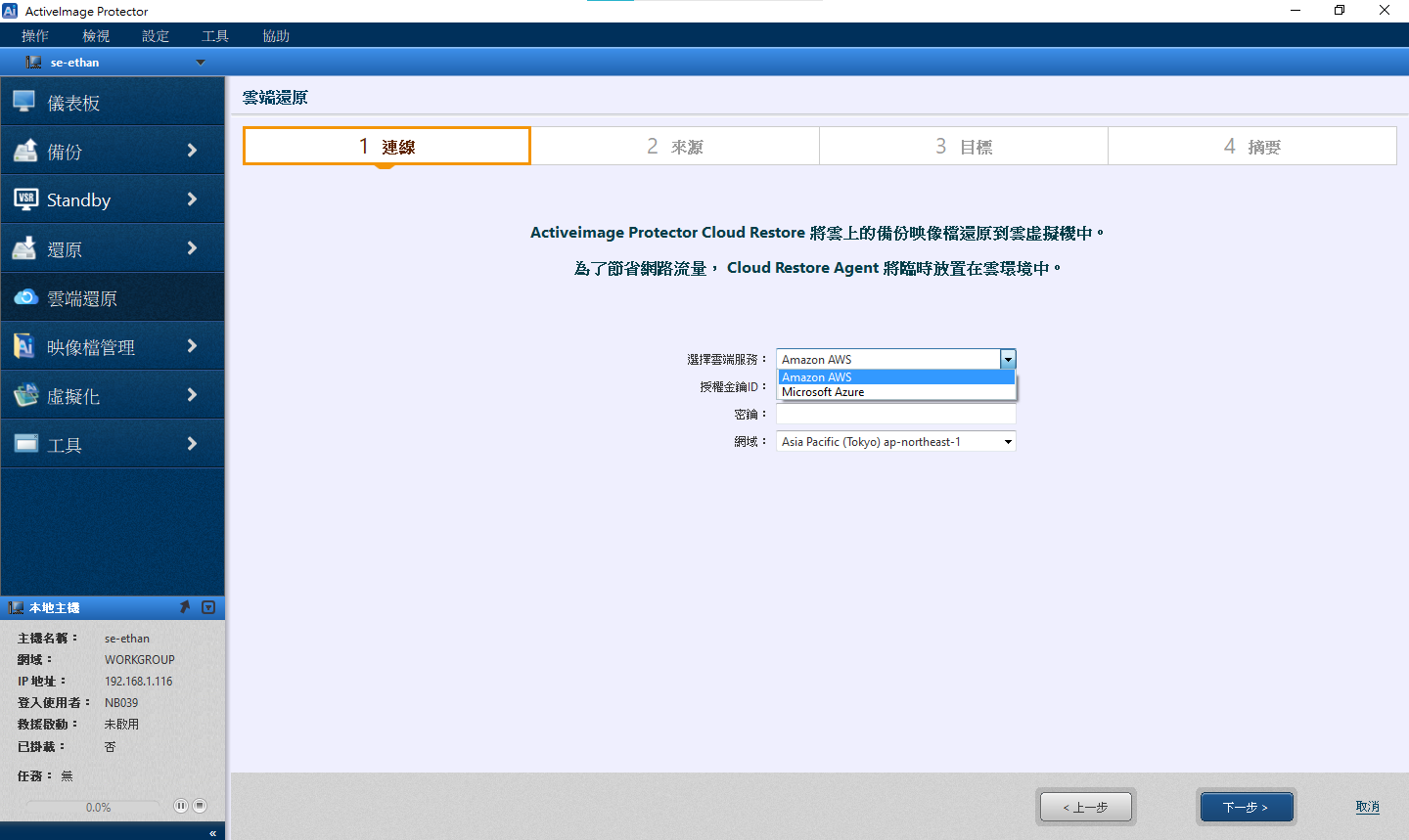 可選擇Azure / Google / Amazon作為異地副本的保存處,將備份映像檔上傳至雲端主機,降低儲存成本並增加便利性。