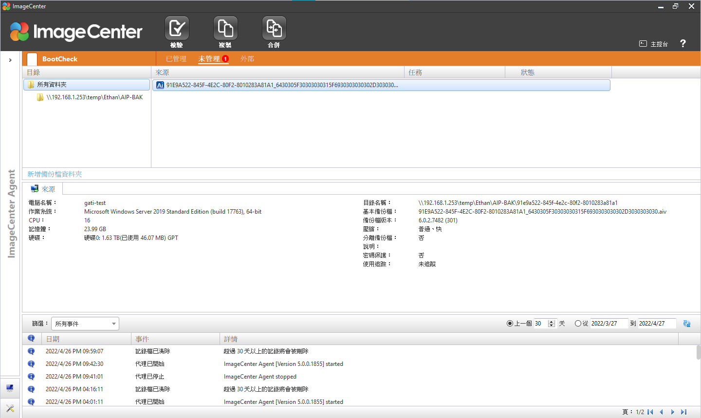 - BootCheck自動測試備份映像是否已準備好啟動,確保備份映像可正確恢復系統